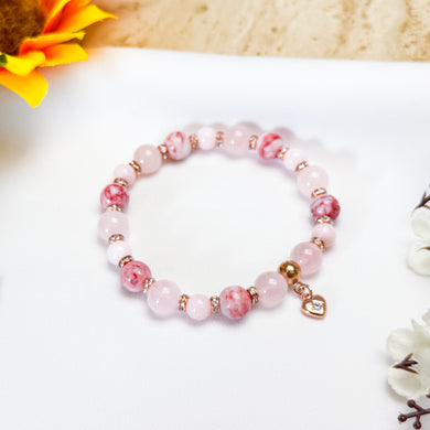 Pink Sorbet Crystal Bracelet (RARE Cinnabrite, Rose Quartz, Mexico Grade 3A Pink Opal)