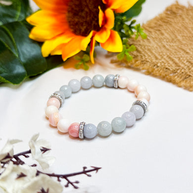 Mini Tiana (Grade 3A Mexico Pink Opal, Green Jade) Crystal Bracelet