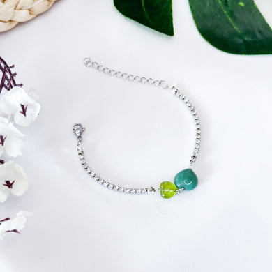 Double Wealth Magnet (Arizona Peridot Mini Heart, Green Aventurine) Tennis Chain Crystal Bracelet