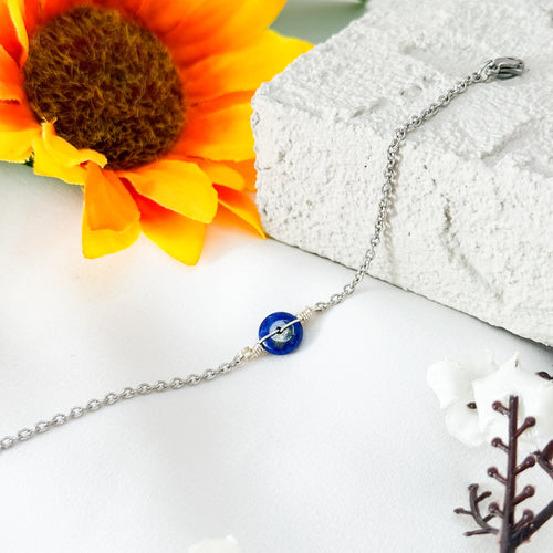 Lapis Lazuli Donut 305 Stainless Steel Chain Crystal Bracelet
