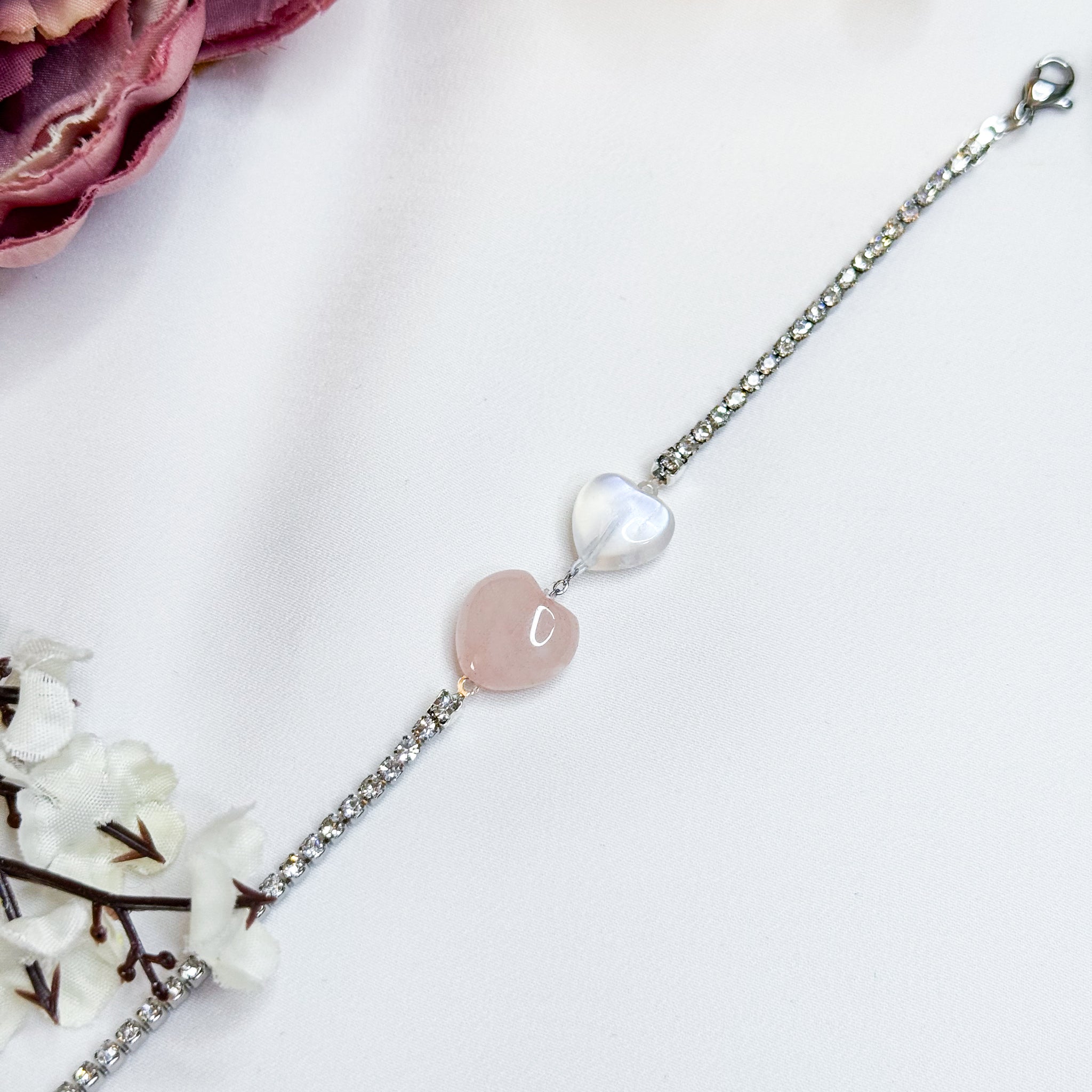 Rainbow Moonstone Heart (10mm), Rose Quartz Heart (12mm)