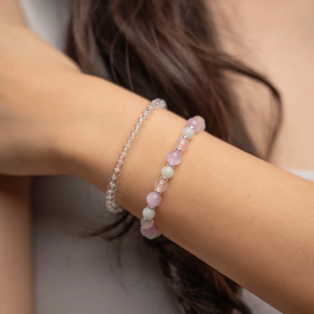 Rose Quartz (6mm), Kunzite (7mm), Green Jade (6mm)