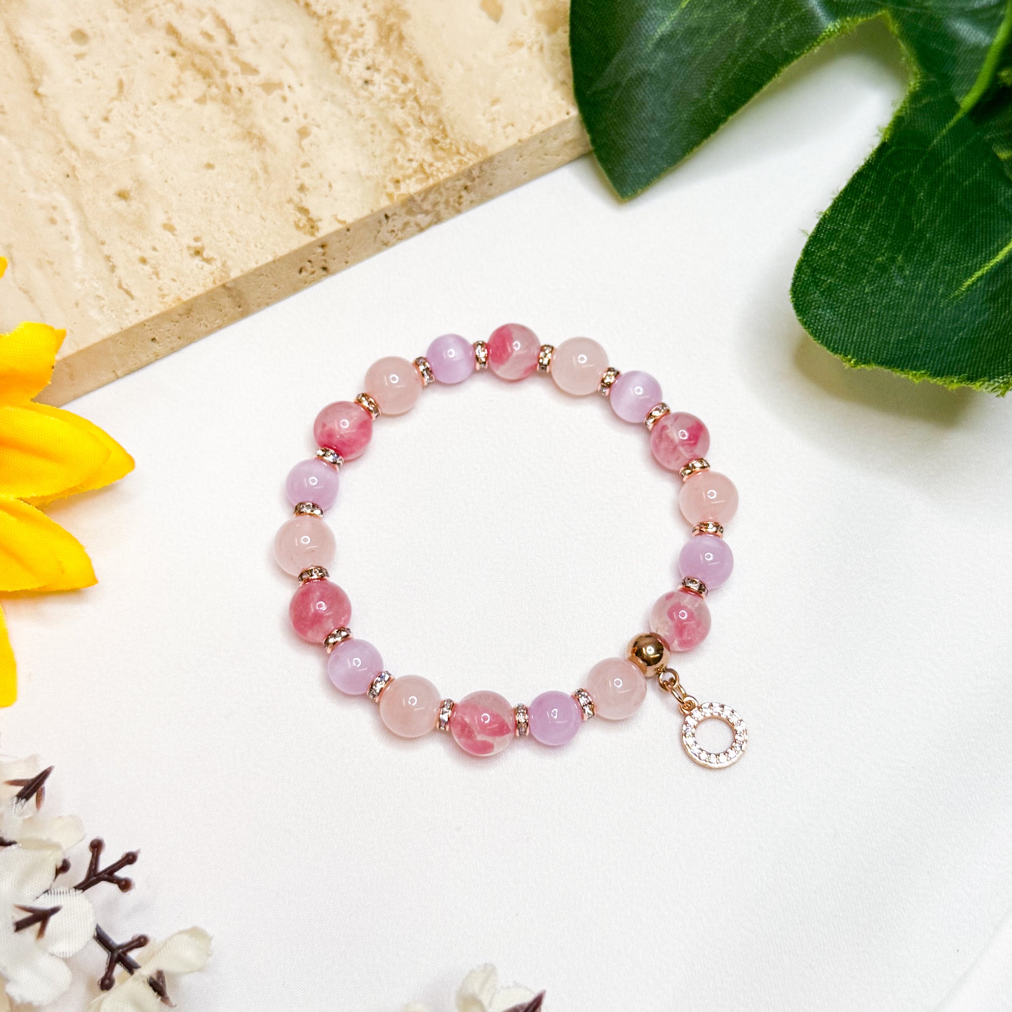 Rose Quartz (8mm), Sakura Rhodonite (8mm), Kunzite (8mm)