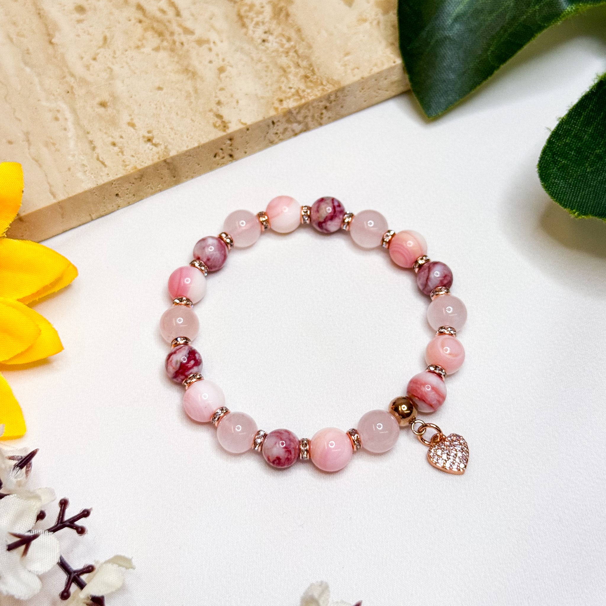 Strawberry Ice Cream Crystal Bracelet (RARE Cinnabrite, Rose Quartz, Pink Conch)