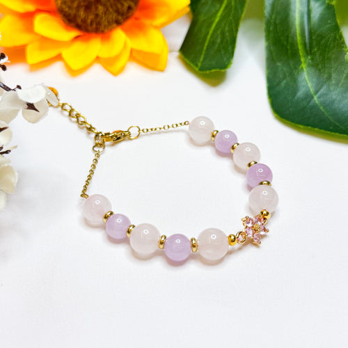 Pink Cherry Blossom (Rose Quartz, White Jade, Chalcedony) Crystal Bracelet