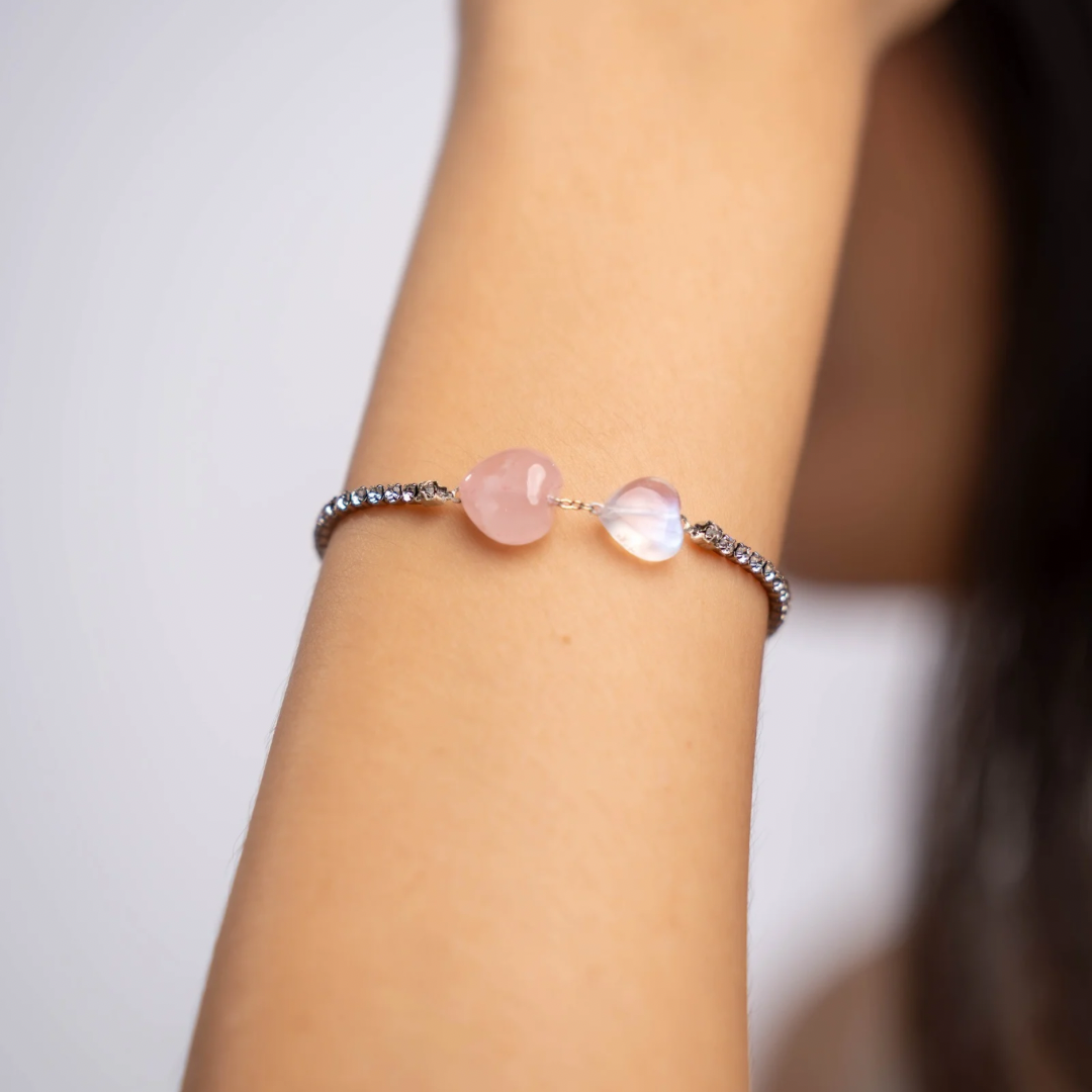 Rainbow Moonstone Heart (10mm), Rose Quartz Heart (12mm)