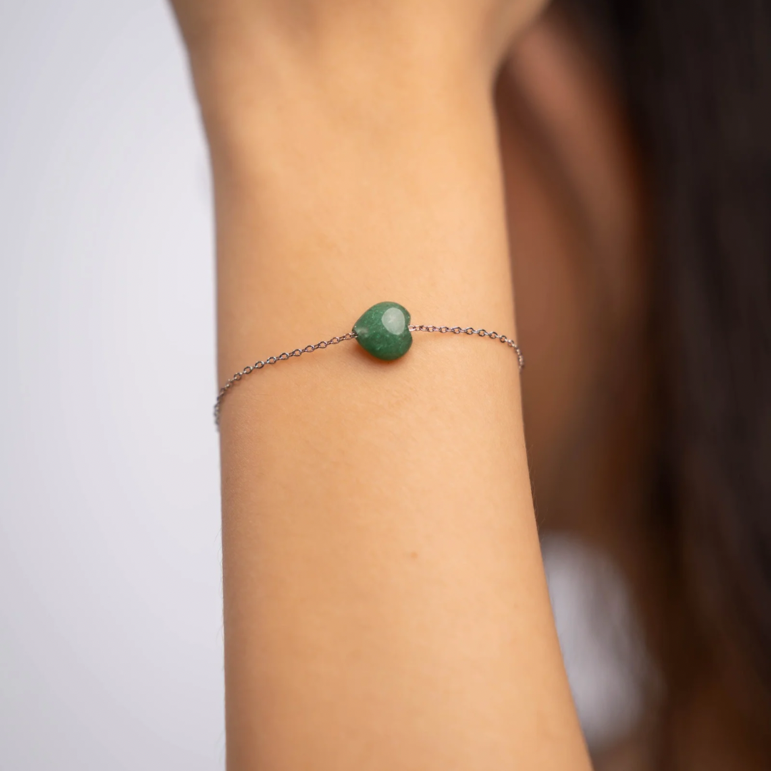 Green Aventurine Mini Stones, Stainless Steel Chains, Lobster Clasp