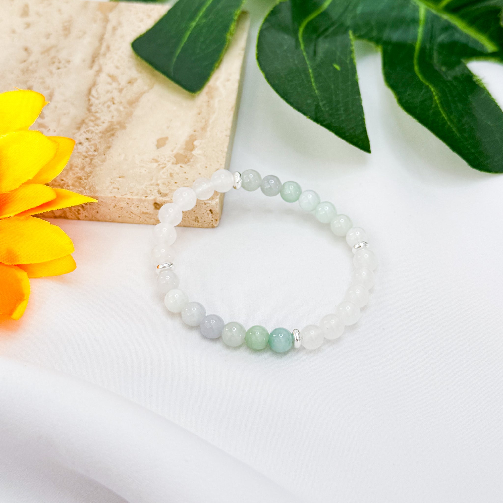Mini Green Jade x Icy White Jade Crystal Bracelet (304 Stainless Steel Spacers)
